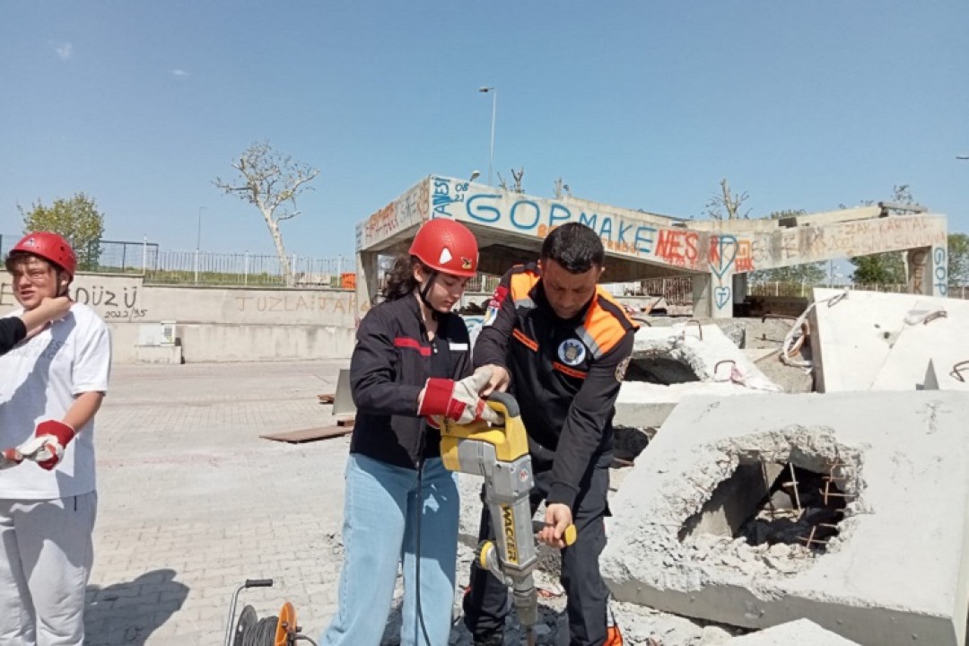 Öğrencilere AFAD eğitim Merkezinde 5 gün süre ile afet öncesinde, sırasında ve sonrasında yapılması gerekenlere yönelik 25 saatlik uygulamalı eğitim verildi.