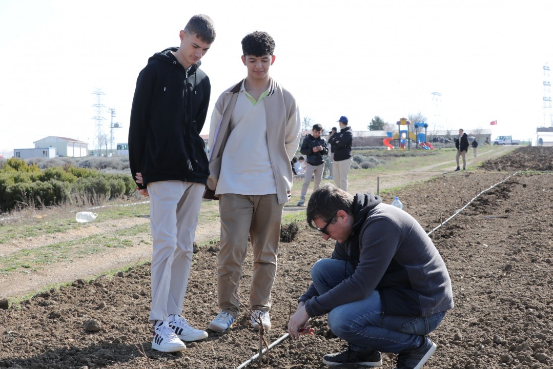Okulumuz, tarımın geleceğini şekillendirecek genç profesyonelleri yetiştirme hedefiyle uygulamalı eğitimlere büyük önem veriyor. Bu kapsamda dikilen asma fidanlarının gelişim süreci öğrenciler tarafından düzenli olarak izlenecek; sulama, budama ve bakım çalışmaları yine onların katkılarıyla sürdürülecek.