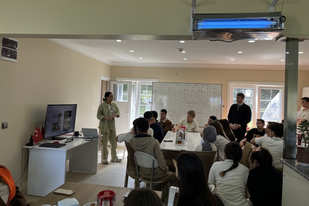 Çiftliğin kurucusu Nesrin Demirer’de öğrencilere özel bir sunum gerçekleştirdi. Sunumda Mimi Çiftliği’nin kuruluş süreci, doğal üretim ilkeleri ve kentsel tarımın geleceği gibi konulara değinen Nesrin Hanım, öğrencilerin sorularını yanıtladı ve gençlere tarıma yönelik farkındalık kazandırmanın önemine dikkat çekti.